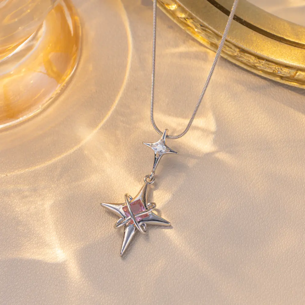 Stainless Steel Lucky four pointed star color guaranteed necklace